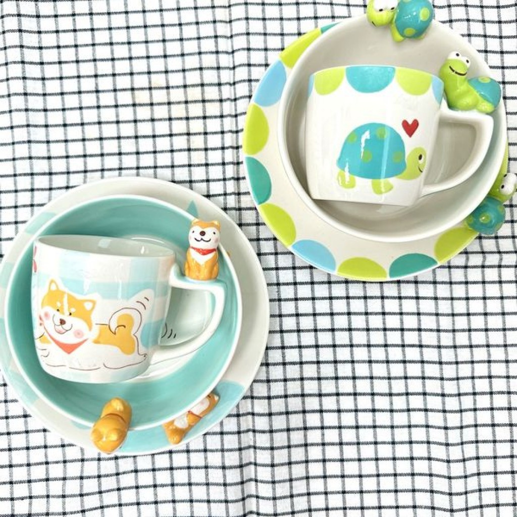 內容:陶瓷盤子x1、陶瓷碗x1、陶瓷馬克杯x1